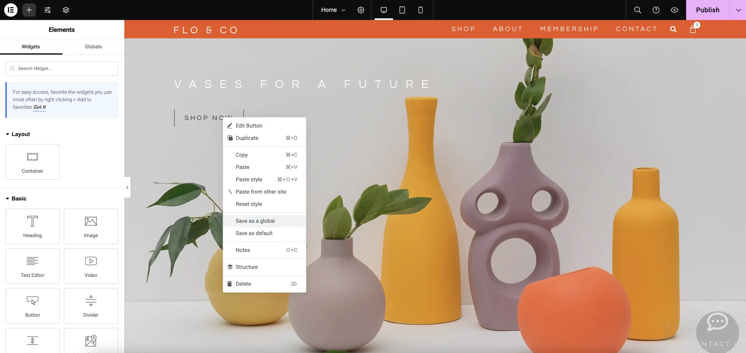 Maintain a consistent look and feel across your website by configuring global fonts, colors, and widgets that ensure design uniformity and speed up your workflow.
