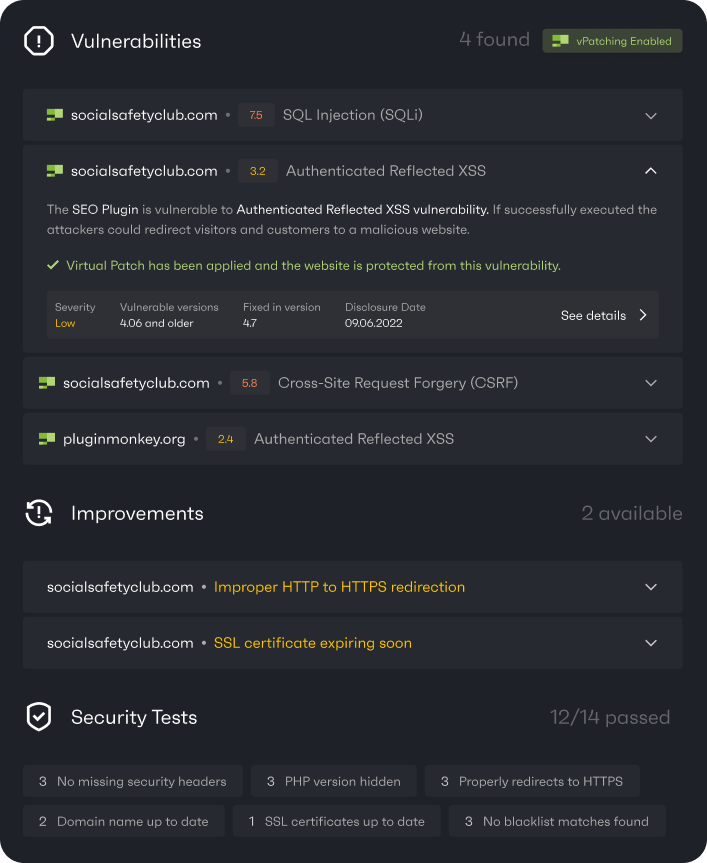 Automatic Virtual Patches: In the ever-evolving world of cybersecurity, staying one step ahead of potential threats is crucial for the safety and integrity of your website. Patchstack, a leading security solution provider, offers a standout feature that sets it apart from its competitors – automatic virtual patching. This innovative feature acts as a first line of defense, offering real-time protection against known vulnerabilities. As soon as a vulnerability is discovered and reported, Patchstack’s team of security experts swiftly create a virtual patch, which is then automatically applied to your site. This means that even before the official patch is released by the software vendor, your site is already safeguarded against potential attacks. Virtual patches are essentially a set of rules or filters that intercept and block malicious traffic targeting the identified vulnerability. By deploying these patches automatically, Patchstack ensures that your website’s security is not reliant on the manual update process, which can sometimes be slow or overlooked by website owners. This automation not only saves you time but also offers continuous protection, minimizing the risk of your site being compromised. What’s more, automatic virtual patching by Patchstack is unobtrusive and does not affect your website’s performance. It operates seamlessly in the background, ensuring that your site’s visitors experience no interruptions or slowdowns. This feature also gives website owners peace of mind, as it alleviates the stress and worry associated with keeping up with the latest security threats and updates. In conclusion, automatic virtual patching by Patchstack is an essential feature for any website owner who values security. It provides a robust, proactive approach to safeguarding your site, allowing you to focus on running your business with confidence, knowing that your online presence is in safe hands. With Patchstack’s continuous protection, you can rest assured that your site is shielded from the ever-present dangers of the digital world.